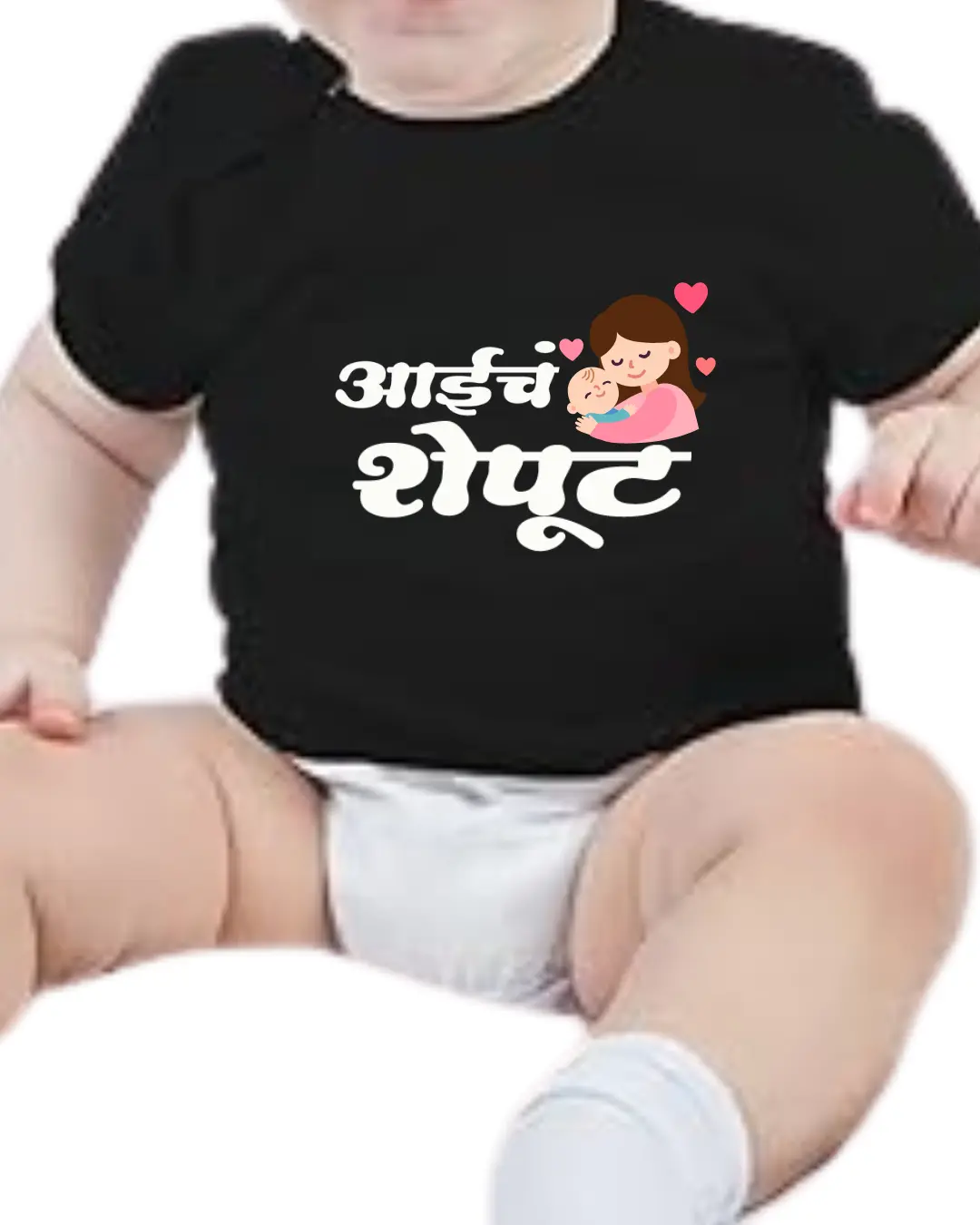 Dress your little bundle of joy in this super-cute “Aai Cha Sheput” Marathi Printed Baby T-Shirt that perfectly captures the bond between mom and baby.