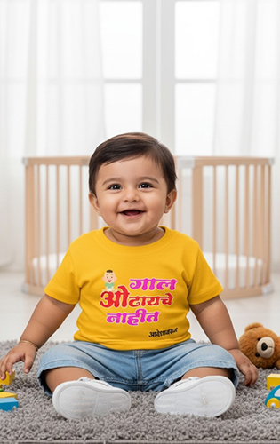 Make your baby’s outfit even more adorable and expressive with our customised Marathi kids T-shirt – “गाल ओढायचे नाहीत.”